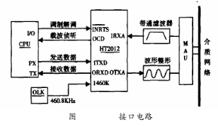 HT2012芯片用來實(shí)現(xiàn)HART協(xié)議中通訊信號的解調(diào)及調(diào)制過程。圖2為調(diào)制解調(diào)器與微處理器的連接。