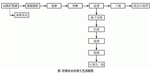 本項(xiàng)目為石煤綜合利用的項(xiàng)目。現(xiàn)有提釩工藝產(chǎn)生大量廢渣。其主要成分為二氧化硅,但其中夾帶有大量的釩資源,釩資源利用率低,同時(shí),該廢渣中堿含量較高,如將廢渣隨意堆放,易造成環(huán)境污染。本項(xiàng)目*大特點(diǎn)在于利用現(xiàn)有提釩工藝中的提釩二次渣作為制備沉淀法白炭黑的主要原料,將廢渣中的硅資源得到充分利用。為企業(yè)創(chuàng)造了新的經(jīng)濟(jì)增長(zhǎng)點(diǎn),同時(shí),解決了現(xiàn)有提釩生產(chǎn)中造成的釩資源浪費(fèi)和環(huán)境污染問題,此外,該項(xiàng)目利用現(xiàn)有提釩生產(chǎn)線脫碳工序中產(chǎn)生的余熱作為加熱熱源,取代了傳統(tǒng)工藝以煙煤為主要燃料的方法,即對(duì)生產(chǎn)中產(chǎn)生的余熱得到了有效合理的利用,又進(jìn)一步降低了產(chǎn)生的燃料成本,達(dá)到了節(jié)能減排,資源綜合利用的目的,工藝流程框圖如下。