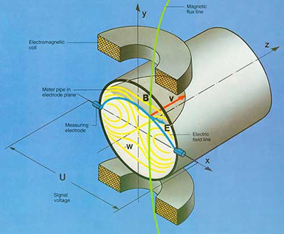 據(jù)法拉*電磁感應(yīng)定律,測量管道內(nèi)的流動的導電液體(等效于許多連續(xù)的導電薄圓盤)做垂直于磁場的運動,產(chǎn)生感應(yīng)電動勢,電勢大小與流量相關(guān)。