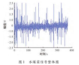 針對(duì)硅酸鈉流量計(jì)測(cè)量水煤漿時(shí)出現(xiàn)較大波動(dòng),甚至回零這一問題,特去某煤化工企業(yè)甲醇分公司進(jìn)行現(xiàn)場(chǎng)數(shù)據(jù)采集。該公司所使用的對(duì)置式四噴嘴氣化有4個(gè)噴嘴,噴嘴管道口徑為125mm,管中水煤漿流量基本穩(wěn)定在19m³/h(流速約為0.48m/s)。每條噴嘴煤漿線上安裝了3臺(tái)硅酸鈉流量計(jì),每臺(tái)硅酸鈉流量計(jì)由傳感器和變送器兩部分組成。選擇其中1條水煤漿管線上的1臺(tái)硅酸鈉流量計(jì)進(jìn)行數(shù)據(jù)采集,因?yàn)樵撆_(tái)硅酸鈉流量計(jì)測(cè)量結(jié)果波動(dòng)大,甚至出現(xiàn)回零的現(xiàn)象。將課題組研制的基于DSP的電磁流量變送器的信號(hào)線和勵(lì)磁線接到該電磁流量傳感器的電極和勵(lì)磁線圈上,組合成完整的硅酸鈉流量計(jì),進(jìn)行水煤漿數(shù)據(jù)采集。使用的電磁流量變送器是以TI公司DSP芯片TMS320F28335為核心,采用高頻勵(lì)磁方案,其硬件主要包括勵(lì)磁控制系統(tǒng)和信號(hào)采集處理系統(tǒng),具體的模塊有勵(lì)磁驅(qū)動(dòng)模塊、信號(hào)調(diào)理采集模塊、信號(hào)處理控制模塊、人機(jī)接口模塊、通信模塊及電源管理模塊。信號(hào)調(diào)理采集模塊中的調(diào)理電路對(duì)一次儀表輸出的信號(hào)進(jìn)行放大和濾波,截止頻率是2kHz,放大倍數(shù)約為230倍。通過NI公司USB-6216型號(hào)的數(shù)據(jù)采集卡進(jìn)行數(shù)據(jù)采集,把調(diào)理電路的輸出端連接到數(shù)據(jù)采集卡的一個(gè)差分輸入端,并設(shè)置數(shù)據(jù)采集卡工作在差分的測(cè)量模式,設(shè)置采集卡的采樣頻率為10kHz。采集多組水煤漿信號(hào)數(shù)據(jù),每組數(shù)據(jù)的時(shí)間長(zhǎng)度為5min。