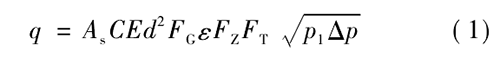 式中,、為標準狀態(tài)下天然氣體積流量,m; /s;  A,為秒計量系數(shù),視采用計量單位而定,此處A=311 794 x 10 -6;  C為流出系數(shù);E為漸近速度系數(shù);d為孔板直徑,mm;  F}為相對密度系數(shù);。為可膨脹系數(shù);F:為超壓縮因子;F:為流動溫度系數(shù);P,為孔板上游側(cè)取壓孔氣流絕對靜壓,Pa;0P為氣流流經(jīng)孔板時產(chǎn)生的壓差,Pao