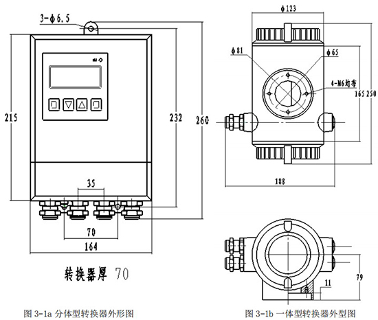 2.5.2 電磁流量計(含傳感器)外形及連接尺寸(見圖 2-2,表 2-4)